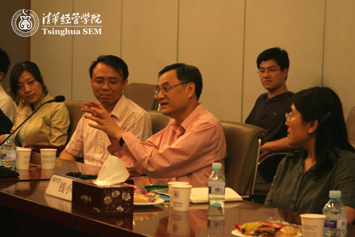 “与院长共品下午茶”是清华经管学院的传统学生活动之一,已在本科生中开展多次。为加强研究生培养,学院于5日首次举行了硕博研究生“与院长共品下午茶”活动。座谈中,钱颖一院长先以活动地点的桌椅摆放方式为话题与同学们探讨了有关沟通的问题。钱院长认为沟通的环境对沟通的效果有十分重要的影响,开放式的环境更有利于进行坦诚而富有成效的沟通,他希望师生之间、同学之间都应积极创造开放式的沟通环境,从而增进理解与感情、加强合作与交流。在答问中,同学们的问题涉及学习生活的方方面面,包括选课与学分、学术报告的参与、论文的数量与质量、数据库资源的利用、在校期间生活费的来源、学生活动组织、研究生创业与就业等。同学们争相发言,老师们耐心解答,师生共同为所发现的问题探讨最佳解决方案,其中不乏有趣的观点和有建设意义的思考。