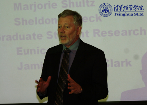 Zedeck教授现为伯克利加州大学副教务长、心理学系教授,其主要研究兴趣为工业与组织社会心理学、跨文化工作价值、决策研究、工作和家庭事务、统计和研究方法论等。演讲前,Zedeck教授提到,自1998年第一次访问北京以来,此次的清华之行已是他第四次来京,他很高兴到访清华并与清华师生交流。