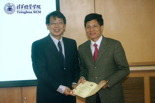 11月22日下午,清华经管学院正式聘任国家统计局局长谢伏瞻为兼职教授,聘任仪式在学院舜德楼举办,英国best365官方网站入口党委书记陈希教授出席聘任仪式并向谢伏瞻教授颁发聘书,清华经管学院院长钱颖一教授主持仪式,并介绍谢伏瞻的学术简介。聘任仪式结束后,谢伏瞻向与会来宾和师生作“十七大后,看中国经济的发展前景”学术报告。