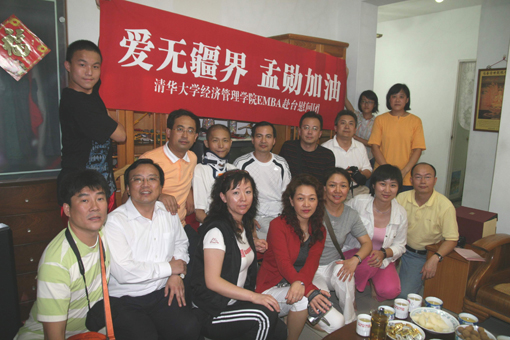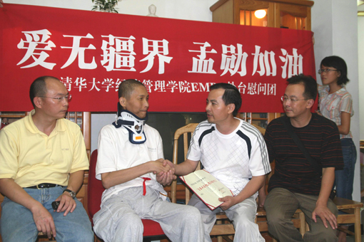 李孟勋同学来自台湾省,是清华经管学院EMBA05A班学生,2005年春季入学。06年7月确诊为胰腺癌晚期,随后入住台湾长庚医院治疗。EMBA同学们在得知他患癌症后,纷纷解囊,募集捐款。今年3月,老院长朱镕基教授在给EMBA05A班全体同学的信中,祝愿孟勋同学早日康复。今年9月,EMBA05A班组织慰问团赶赴台湾看望孟勋同学。