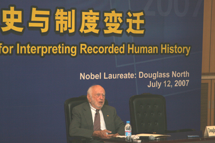 (诺贝尔经济学奖获得者道格拉斯·诺斯教授在清华经管学院作题为“人类历史与制度变迁”的主旨演讲)