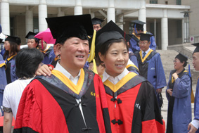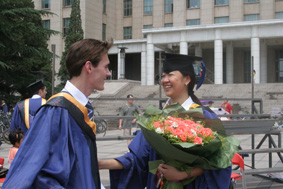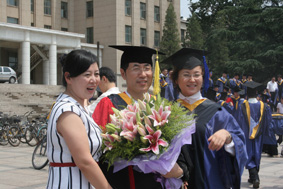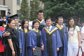 上午11时,参加完毕业典礼的经管学子们来到位于大学主楼前的旗杆下,与辛勤培育他们四年的老师们合影留念。同学们自信雀跃,老师们欣慰祥和。摄影机的背后,众多毕业生的家长不顾烈日炎炎,翘首以待,注视着镜头前的子女,自豪之情溢于言表。