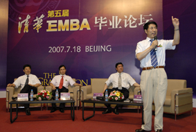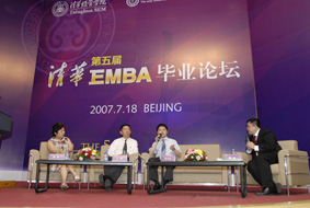 下午,第五届清华EMBA毕业论坛在学院伟伦楼国际报告厅举办。院长钱颖一教授、党委书记杨斌教授、副院长兼EMBA项目主任廖理教授出席。钱颖一院长对今年毕业的EMBA学生给予了充分肯定,并寄予厚望,祝愿他们在事业上取得更大的成绩,在建设世界一流企业的道路上更进一步。论坛上,EMBA毕业生们与学院的金占明、宁向东、杨斌、朱武祥和证监会研究中心主任祁斌等5名专家教授展开了一场中国优秀企业家与经济管理学界的高峰对话。这些事业成功却不忘苦学的企业家们通过努力和汗水取得了清华EMBA学位,并把自己在EMBA课堂上的所学应用到企业管理实务中,指导企业在日益激烈的国际竞争环境下锐意进取,开拓创新。学识渊博、经验丰富的他们已经愈发成为中国经济发展的中坚力量,并将为中国经济的腾飞书写新的篇章。