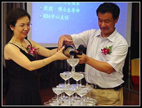晚上,清华科技园创新大厦,“缘聚行”——清华MBA2007届毕业酒会如期举行。有二十多位院领导及老师出席,学院党委书记杨斌老师给同学赠送了临别寄语,并现场朗诵了弗罗斯特(Frost)的诗句,《Stopping by Woods on a Snowy Evening》“雪夜停林边”。低沉、浑厚的声音缭绕在大厅,同学们静静聆听,品味着诗句背后的韵味,是责任,也是承诺。在简短而精辟的致辞后,副院长兼MBA项目主任仝允桓老师和常务副主任毛东辉老师共同开启了香槟,祝福同学们一路珍重。老师们临别的嘱托少了几分教导,多了几分温情,酒杯频频碰撞,将离别的祝福融入其中。酒会在F2班“好人好梦”的合唱声中落下帷幕,灯光渐暗,舞曲悠扬……正是晓风朗月,共话离别之情;此去经年,各展青云之志。